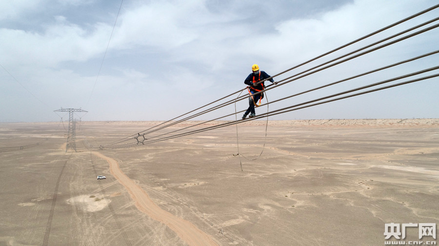 新疆送變電有限公司檢修人員對哈鄭直流進(jìn)行走線巡檢(央廣網(wǎng)發(fā) 通訊員李效甲 攝)