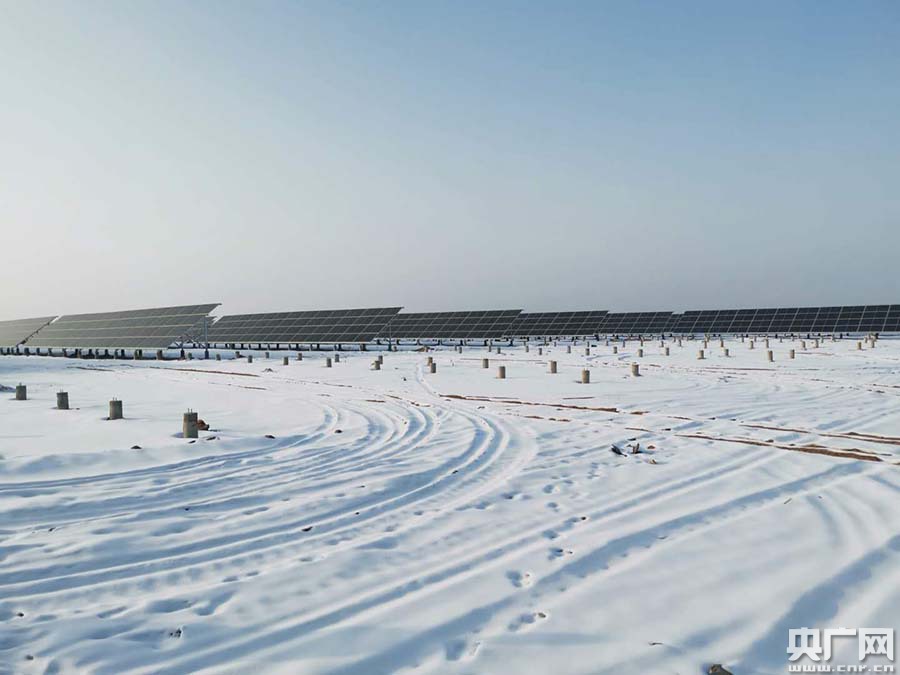 “四九”嚴(yán)寒,走進(jìn)準(zhǔn)東經(jīng)濟(jì)開發(fā)區(qū)吉木薩爾縣光伏發(fā)電廠,白雪皚皚的戈壁灘上布滿了藍(lán)色光伏板,工作人員張曉磊正在檢查光伏板運(yùn)行情況。