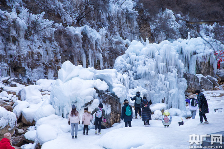 春節(jié)期間,河南云臺(tái)山冰瀑景觀吸引游人駐足賞玩。(央廣網(wǎng)發(fā) 吳沛萌 攝)