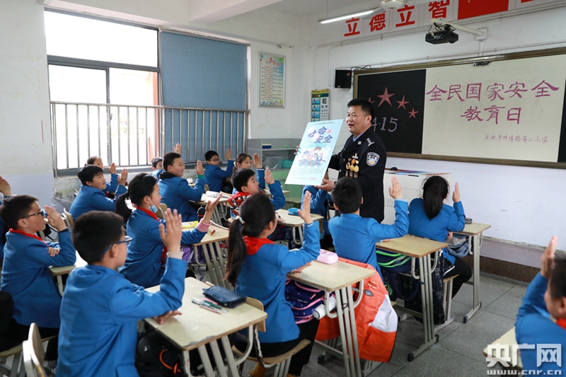 “同學們,家是最小國,國是千萬家,國家安全了,才有千千萬萬個小家的安全。你們都知道國家安全包含哪些內(nèi)容嗎?”在安徽省合肥市瑤海區(qū)蚌埠路第二小學五年級的一間教室里,合肥市公安局廬陽分局巡警大隊民警王軍剛一提問,孩子們不約而同舉起了手。