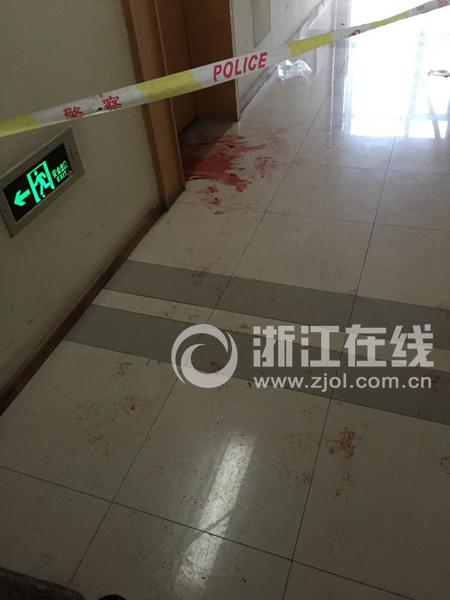 今早杭州新青年廣場(chǎng)B座9樓的保潔師傅在打掃衛(wèi)生的時(shí)候,突然在909室的門口發(fā)現(xiàn)了一攤血跡。