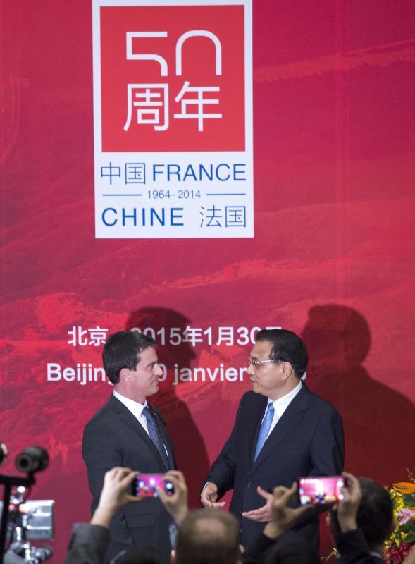 李克強同法國總理瓦爾斯共同出席中法建交50周年紀念活動閉幕式時強調(diào)攜手續(xù)寫中法友好新篇章