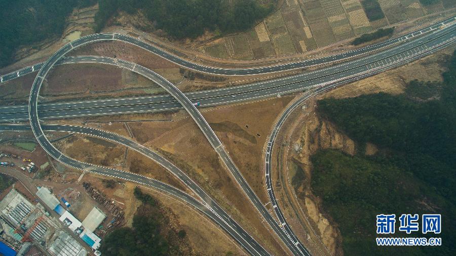 2月5日,空中俯瞰東永高速公路。當(dāng)日,浙江省東陽(yáng)市供電公司的電力工人為浙江省最短高速公路——東永高速公路進(jìn)行通車前的最后一次電力設(shè)備巡視工作,為開通做準(zhǔn)備。該高速公路連通浙江中部的東陽(yáng)市和永康市,全長(zhǎng)44.699公里,是目前浙江省內(nèi)已建成的最短的高速公路。 2015年1月底,東永高速公路已順利通過(guò)交工驗(yàn)收,開通在即。該高速路段編號(hào)為S27,是浙江省“十一五”重大建設(shè)項(xiàng)目,連接?xùn)|陽(yáng)市和永康市,其中東陽(yáng)段13.844公里、永康段30.855公里;按照雙向四車道高速公路標(biāo)準(zhǔn)設(shè)計(jì),主線設(shè)計(jì)速度100公里每小時(shí)。通車后將使浙江省內(nèi)杭金衢、金麗溫、甬金、諸永等高速公路有機(jī)地連通在一起,大大改善浙江中部地區(qū)的高速交通條件。新華社記者 徐昱 攝