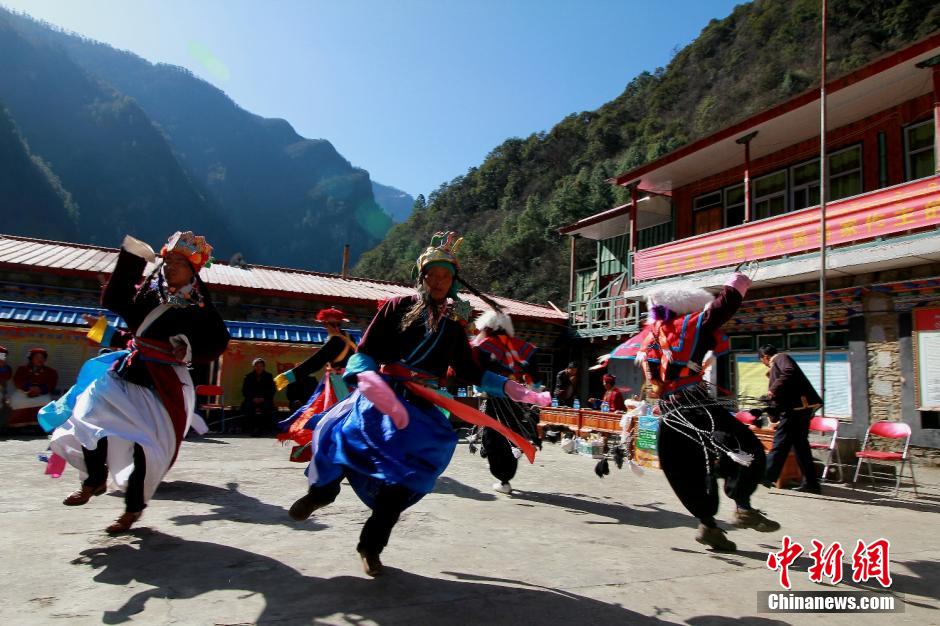 2月23日,門巴族民眾歡聚在勒門巴族鄉(xiāng),身著極富民族特色的服飾,歡快地跳起了古老、神秘而喜慶的門巴戲,共同歡度農(nóng)歷新年和藏歷新年。門巴族是中國少數(shù)民族人口最少的民族之一,而坐落在高原山谷中的門巴族卻擁有悠久的文化底蘊,門巴戲就是其中之一。何宇恒 攝