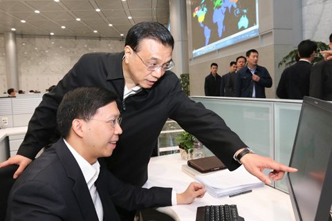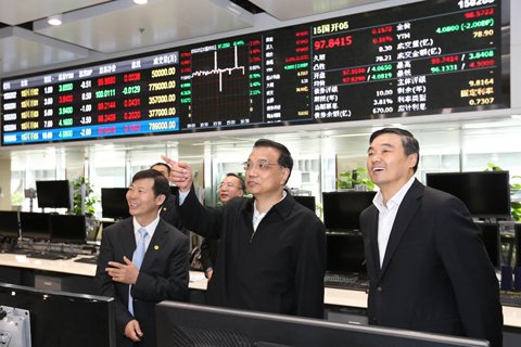 4月17日,中共中央政治局常委、國務(wù)院總理李克強來到國家開發(fā)銀行和中國工商銀行考察并主持召開座談會。這是李克強考察國家開發(fā)銀行。圖/新華社