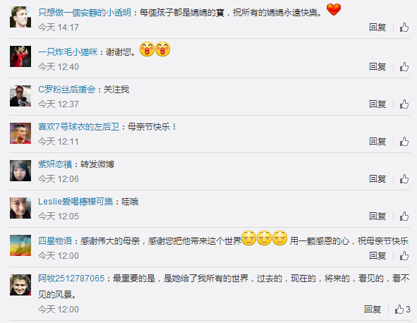 現(xiàn)在年輕人最常用的社交工具——微博、微信,早在母親節(jié)前幾天就開始被各種相關(guān)話題刷屏。平時專注于八卦、美食、明星的小清新小潮人,紛紛轉(zhuǎn)型走起了煽情路線,曬出對母親的各種祝福。