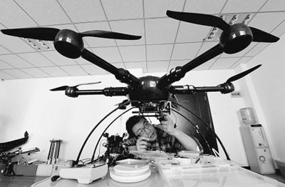蘭州高新區(qū)大學(xué)生創(chuàng)業(yè)苗圃,楊啟帆在組裝多旋翼一體機。新華社記者 范培珅攝