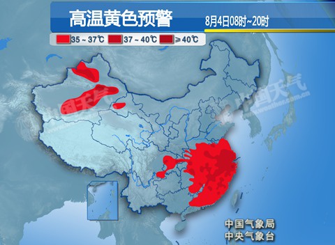 中央氣象臺(tái)預(yù)計(jì),未來三天,受副熱帶高壓影響,黃淮南部、江淮、江漢、江南大部、華南東部及四川盆地東部等地將有35℃以上的高溫天氣,部分地區(qū)最高氣溫37~39℃,期間受冷空氣影響,5日開始,四川盆地東部和黃淮南部的高溫減弱。另外,新疆南疆盆地、吐魯番盆地和準(zhǔn)噶爾盆地南部等地有35℃以上的高溫天氣,部分地區(qū)最高氣溫37~39℃,吐魯番盆地可達(dá)40~42℃。為此,中央氣象臺(tái)8月4日06時(shí)繼續(xù)發(fā)布高溫黃色預(yù)警。