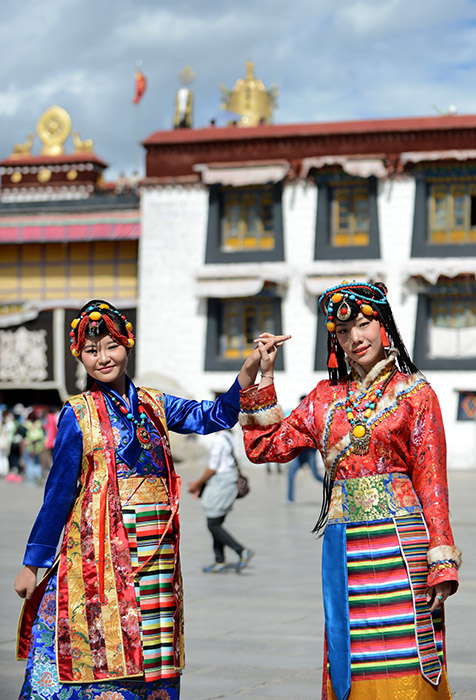 8月19日,兩名游客在大昭寺前留影。