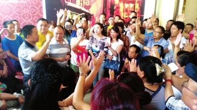 在會(huì)場(chǎng)內(nèi),投資戶(hù)們紛紛拋出問(wèn)題質(zhì)問(wèn)呂長(zhǎng)虹,并一度出現(xiàn)混亂。最終,投資戶(hù)們開(kāi)始簽字要求退房。