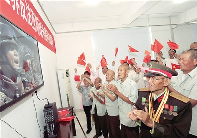 “我們感到十分高興和榮耀,能看到如今國家的繁榮昌盛,就算當年我們參加的戰(zhàn)斗很艱苦,可是為了捍衛(wèi)國家主權(quán)、民族尊嚴,為了現(xiàn)在社會的和諧穩(wěn)定,流血犧牲都是值得的!崩细刹客蹩f。當聽到《保衛(wèi)黃河》《游擊隊歌》等抗戰(zhàn)革命歌曲響起時,現(xiàn)場許多老干部都情不自禁地跟著大聲唱?吹锦r艷的五星紅旗冉冉升起,抗戰(zhàn)老兵自豪地向國旗敬軍禮。