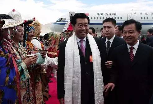 以時任中共中央政治局常委、全國政協(xié)主席賈慶林為團長的中央代表團乘專機抵達拉薩,參加西藏自治區(qū)成立40周年慶;顒。