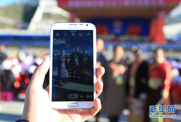 今年是西藏自治區(qū)成立50周年。9月8日上午10時,西藏自治區(qū)成立50周年慶祝大會在拉薩市布達(dá)拉宮廣場舉行。圖為觀眾在大會現(xiàn)場合影。