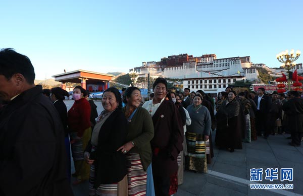 今年是西藏自治區(qū)成立50周年。9月8日上午10時,西藏自治區(qū)成立50周年慶祝大會在拉薩市布達(dá)拉宮廣場舉行。圖為到達(dá)大會現(xiàn)場的觀禮群眾。