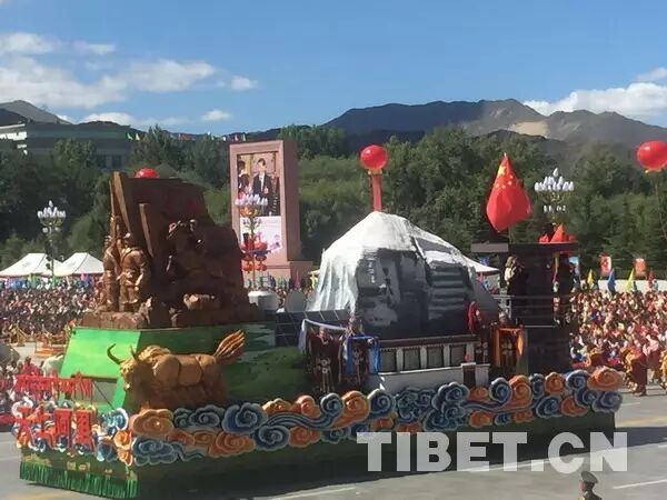 在激動人心的西藏“五十”大慶慶典活動中,群眾的游行隊伍格外搶人眼球,西藏各族兒女身穿節(jié)日盛裝,舞起最炫的民族風,濃縮五十年發(fā)展歷程的彩車,使每一游行隊伍以最真誠的情感、詮釋表達對黨中央、對祖國的感恩和對祖國無限的熱愛,充分表達了西藏各族人民對黨的深情厚誼,向世人訴說著西藏的昨天和今天,譜寫出了中華民族偉大復興中國夢的西藏篇章。