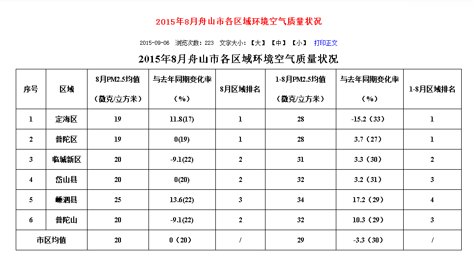 全國8月空氣質(zhì)量排行發(fā)布 舟山各區(qū)域排名均靠前