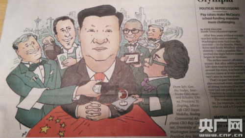 《西雅圖時報(bào)》頭版頭條報(bào)道習(xí)近平訪美