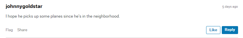 網(wǎng)友Johnny Goldstar:希望習(xí)近平此行能多買幾架飛機(jī)。