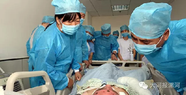 入院時,張超方身體多處器官嚴(yán)重受傷,隨時有生命危險。據(jù)天津第一中心醫(yī)院重癥科主任介紹,當(dāng)時患者頭面頸、四肢包括臀部有兩度到三度的燒傷,同時還有急性顱腦損傷、硬膜下積液、彌漫性肘索損傷、左頂頭皮挫傷、吸入性肺損傷、呼吸衰竭、急性腎損傷、頭面部多發(fā)骨折、雙眼燒傷等病癥!盎颊呷朐簳r情況十分危急,被衛(wèi)計委定為天津市最重傷員,而且隨時有生命危險,”醫(yī)院負(fù)責(zé)人說。