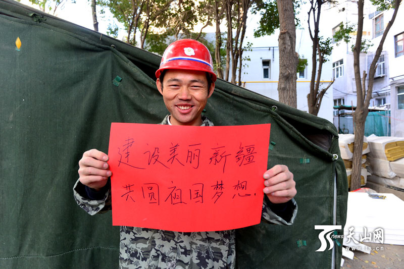 天山網(wǎng)訊(記者趙勇 張琴 金佐坤 朱翊攝影報道)國務院新聞辦9月24日宣布,新疆維吾爾自治區(qū)成立60周年慶;顒踊I備工作順利完成。習近平總書記為自治區(qū)成立60周年題寫了“建設美麗新疆、共圓祖國夢想”的賀匾。24日下午,天山網(wǎng)記者來到烏魯木齊市街頭,走訪了各行各業(yè)的普通百姓,他們得知習近平總書記題字的消息后都很興奮,表示“建設美麗新疆、共圓祖國夢想”也是新疆各族兒女的夢想和心聲,市民們紛紛將習近平總書記的題字內(nèi)容寫在紅紙上留影紀念,表達慶祝新疆維吾爾自治區(qū)成立60周年的喜悅。