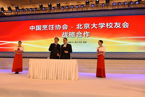 在11月18日下午召開的2015中國餐飲企業(yè)家大會上,中國烹飪協(xié)會會長姜俊賢與北京大學校友會副秘書長王健正式簽署戰(zhàn)略合作協(xié)議,雙方將在未來三年里,共同舉辦全國餐飲產(chǎn)業(yè)青年創(chuàng)業(yè)創(chuàng)新項目選拔賽,并通過北京大學校友會平臺,共同選拔、孵化、提升和宣傳中國餐飲業(yè)優(yōu)秀新興企業(yè),引導全國餐飲行業(yè)運用新思路、新模式、新品牌、新服務實現(xiàn)多元化轉(zhuǎn)型和可持續(xù)發(fā)展。