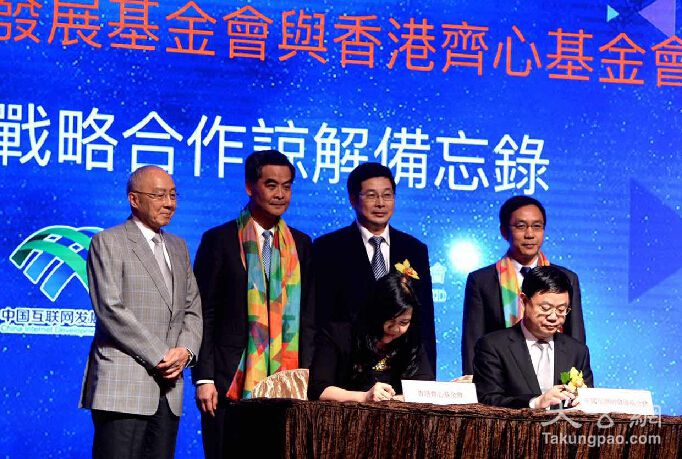 中國互聯(lián)網(wǎng)發(fā)展基金會與香港齊心基金會簽署《戰(zhàn)略合作諒解備忘錄》。大公報記者 林良堅攝