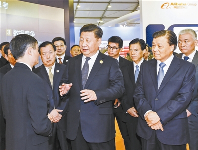下午3時(shí)許,習(xí)近平抵達(dá)博覽會(huì)展館,在“互聯(lián)網(wǎng)+”主題展區(qū),視察國(guó)內(nèi)外重點(diǎn)網(wǎng)信企業(yè)最新技術(shù)產(chǎn)品等成果,同企業(yè)家們親切交流。
