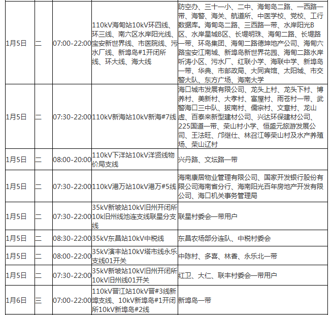 ?诠╇娋纸裉彀l(fā)布2016年1月4日至20日停電公告,以進(jìn)行供電線路改造升級(jí)、設(shè)備消缺維護(hù)。?诓糠志用裼秒妼⑹艿接绊懀(qǐng)?zhí)崆白龊脺?zhǔn)備。