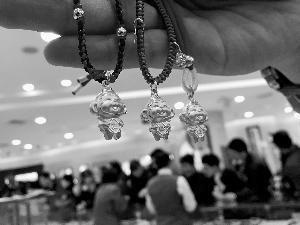 元旦假期各大黃金賣場(chǎng)生肖柜臺(tái)前圍滿了顧客,其中猴子造型金飾最得寵。據(jù)統(tǒng)計(jì),元旦當(dāng)日菜百銷售額比節(jié)前增長(zhǎng)60%以上,成交筆數(shù)近2.5萬筆,平均每小時(shí)成交2000多筆,“佳運(yùn)猴”賀歲系列產(chǎn)品幾乎被一搶而空,2至5克左右的機(jī)靈可愛小猴吊墜、不超過千元的“圓圓滿滿,吉祥平安”金錢最受歡迎,當(dāng)天猴年生肖類產(chǎn)品就銷售了近25公斤。北京晨報(bào)記者 陳琳/文 王穎/攝