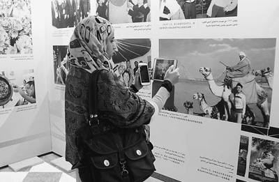 埃及《消息報》記者阿斯瑪認(rèn)真地觀看了圖片展,并用手機(jī)把自己喜歡的圖片拍了下來。阿斯瑪指著一幅埃及人學(xué)習(xí)太極拳的照片說:“這幅圖片我最喜歡,因為它展示了我們中埃兩國文化的不斷交流與交融,圖片的力量勝過千言萬語,從這些精彩的圖片中我們能夠真切地感受到中國與埃及建交60年來的親密友誼與良好關(guān)系。”