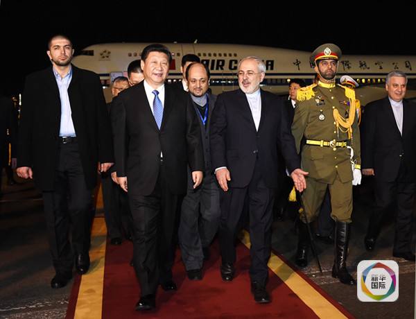當?shù)貢r間1月22日,中國國家主席習近平乘專機抵達伊朗首都德黑蘭,開始對伊朗進行國事訪問。在梅赫拉巴德機場,習近平受到伊朗外交部長扎里夫等熱情迎接。(新華社記者饒愛民攝)