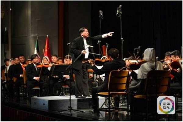 2015年8月13日、14日,中國愛樂樂團“絲綢之路巡演”在德黑蘭團結(jié)宮劇場舉行兩場交響音樂會。圖為中國愛樂樂團藝術(shù)指導、著名指揮家余隆在音樂會上激情指揮。(互聯(lián)網(wǎng))