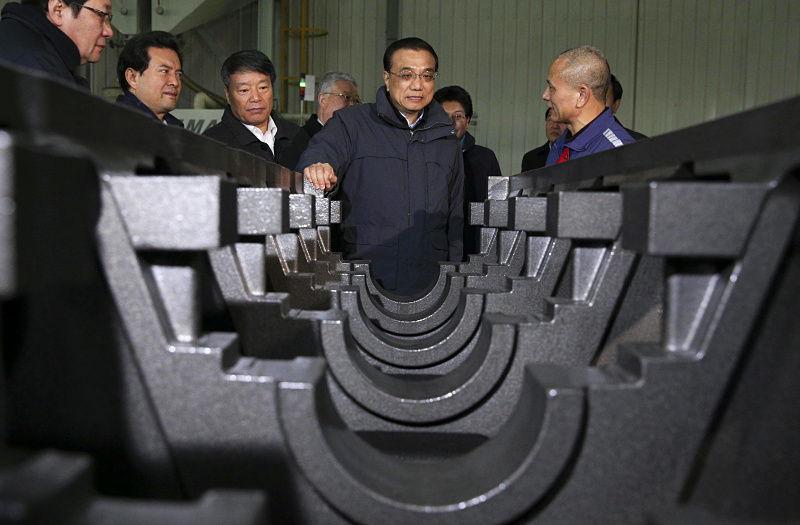 在共享裝備公司,李克強先后走進傳統(tǒng)鑄造車間和3D打印車間,看到企業(yè)通過創(chuàng)新,將過去傻大黑粗的鑄件產(chǎn)品逐步變成更加適應(yīng)市場的精細靈巧新產(chǎn)品,今年利潤將實現(xiàn)翻番,李克強贊許地說,用顛覆性新技術(shù)改造傳統(tǒng)產(chǎn)業(yè)大有空間!爸袊圃2025”的前途就在于“+互聯(lián)網(wǎng)”,廣泛集眾智、借外腦,不僅可以在全球找到傳統(tǒng)產(chǎn)業(yè)升級的最好技術(shù)方案,實現(xiàn)材料、工藝、模式、人才最佳組合,而且會大大提升效率和效益。要進一步打造更開放的平臺,讓大中小企業(yè)、科研院所都進來,形成聚集效應(yīng)和創(chuàng)新工場,推動傳統(tǒng)制造浴火重生。