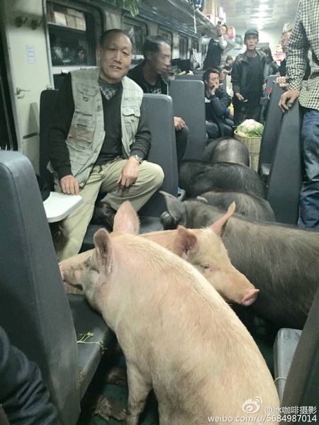 春運列車豬人同車圖片熱傳 作者:系鐵路通勤車