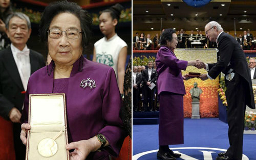 資料圖:中國(guó)藥學(xué)家屠呦呦獲2015年諾貝爾醫(yī)學(xué)獎(jiǎng)?lì)I(lǐng)獎(jiǎng)瞬間