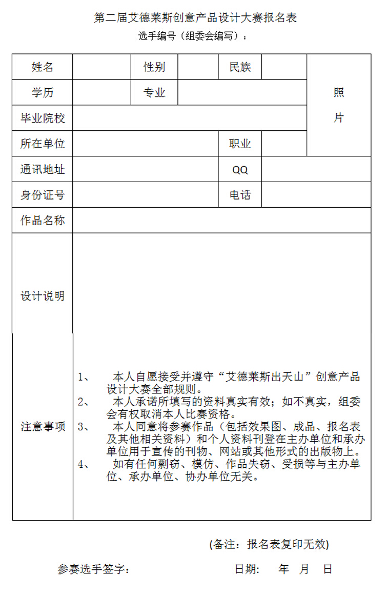 ★大賽報(bào)名表:參賽表單獨(dú)打印,附本人彩色照片一張(詳見附件);