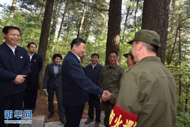 5月23日下午,習(xí)近平在上甘嶺林業(yè)局溪水國家森林公園視察時(shí),叮囑林場工作人員一定要把森林資源保護(hù)好。 新華社記者 李濤 攝
