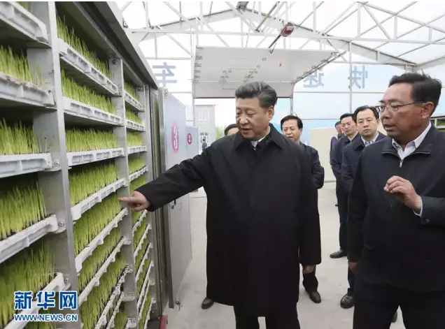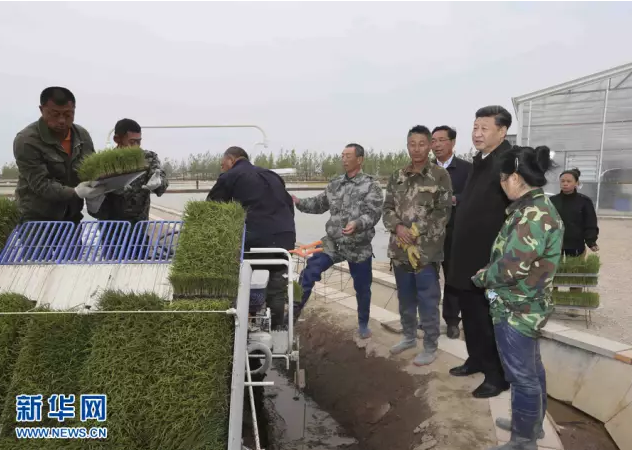 5月24日上午,習(xí)近平在撫遠(yuǎn)市玖成水稻種植合作社了解箱式快速育秧技術(shù)流程。 新華社記者 蘭紅光 攝