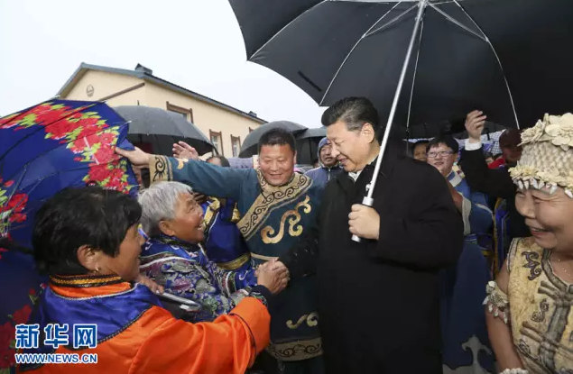 5月24日下午,習(xí)近平在佳木斯市同江市八岔赫哲族鄉(xiāng)八岔村冒雨與村民們交談。 新華社記者 蘭紅光 攝