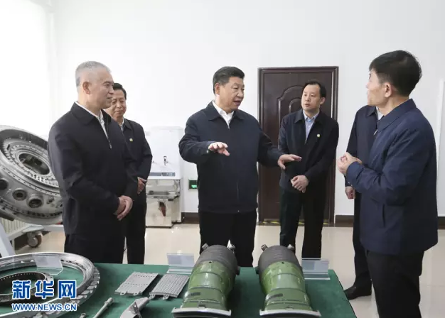 5月25日上午,習(xí)近平在中國船舶重工集團(tuán)公司第七〇三研究所了解小型燃?xì)廨啓C(jī)研發(fā)情況。 新華社記者 蘭紅光 攝