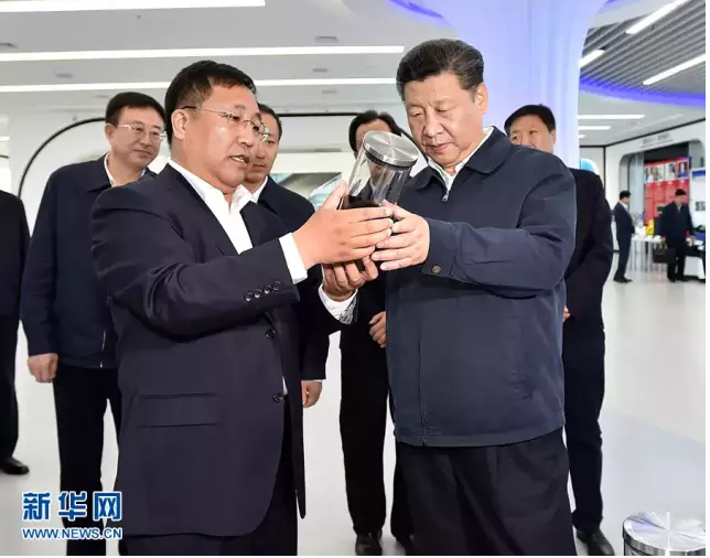 5月25日上午,習(xí)近平在哈爾濱科技創(chuàng)新創(chuàng)業(yè)大廈察看石墨烯高新技術(shù)成果展示。 新華社記者 李濤 攝