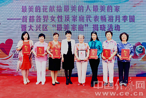 中國經(jīng)濟網(wǎng)記者了解到,該活動由北京市婦聯(lián)和大興區(qū)委主辦,大興區(qū)委宣傳部、區(qū)婦聯(lián)、區(qū)旅游委和區(qū)月季辦承辦,愛情海玫瑰文化博覽園協(xié)辦。北京市婦聯(lián)黨組書記、主席馬蘭霞, 大興區(qū)委副書記、區(qū)委政法委書記王有國,大興區(qū)委常委、宣傳部長、統(tǒng)戰(zhàn)部長沈潔等出席活動,并為大興區(qū)獲“全國最美家庭”、“首都最美家庭”榮譽稱號的家庭代表頒發(fā)證書及獎杯,為16區(qū)代表發(fā)放“觀光券”和迷你月季盆栽。