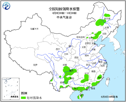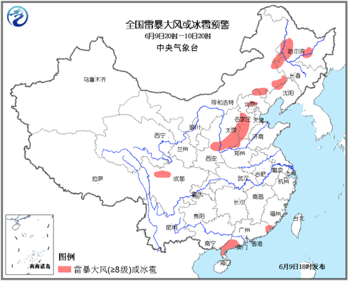 中央氣象臺18時繼續(xù)發(fā)布強對流天氣藍色預警:預計6月9日20時至10日20時,內蒙古中部和東部偏南地區(qū)、陜西中部、山西中南部、河北、北京北部、黑龍江中西部、吉林西部、遼寧西部、四川西北部、廣東南部局地將有8至9級雷暴大風或冰雹天氣。其中華北地區(qū)重點關注午后風雹天氣;內蒙古東北部、黑龍江西南部、吉林西北部、河北北部、北京北部、四川東南部、重慶南部、貴州西部、云南、湖南東南部、福建中南部、廣西南部、廣東南部、海南等地將有短時強降水天氣,小時雨強20至50毫米,局地大于60毫米。