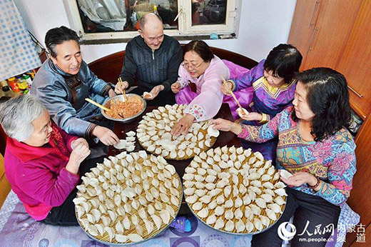 圖為呼和浩特市清泉街社區(qū)的少數(shù)民族居民圍坐在一起包餃子:“生活在這個(gè)社區(qū)的各族群眾之間和諧團(tuán)結(jié),大家將心比心以心換心,親如一家心連心!保ㄙY料圖)