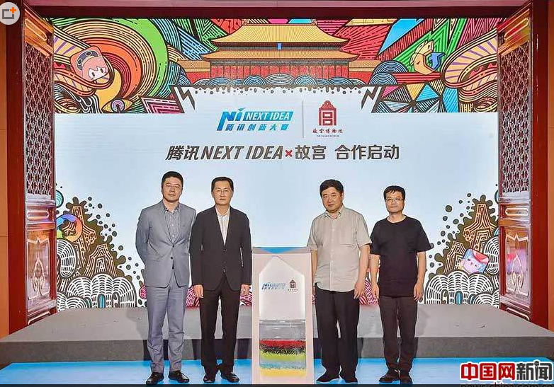 2016年7月6日,騰訊與故宮博物院在故宮端門數(shù)字館舉辦“騰訊NEXT IDEA ×故宮”發(fā)布會(huì),宣布建立合作伙伴關(guān)系,開展長(zhǎng)期合作。故宮博物院院長(zhǎng)單霽翔(右二)、故宮博物院副院長(zhǎng)馮乃恩(右一),騰訊公司董事會(huì)主席兼首席執(zhí)行官、北京故宮文物保護(hù)基金會(huì)創(chuàng)始理事馬化騰(左二),騰訊公司副總裁、騰訊影業(yè)首席執(zhí)行官程武(左一)出席此次發(fā)布會(huì)。