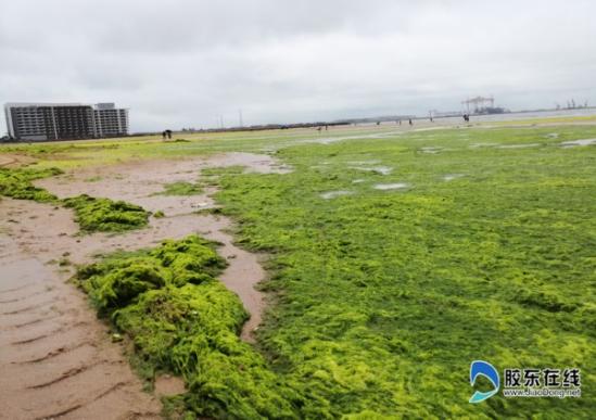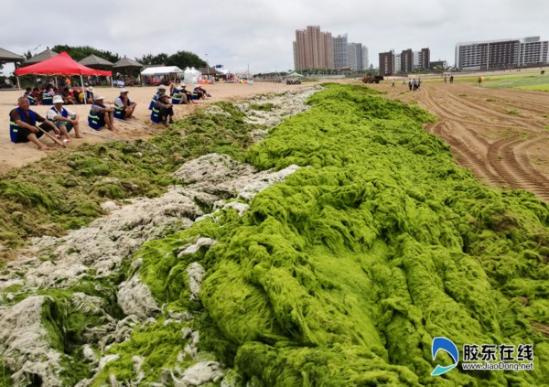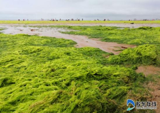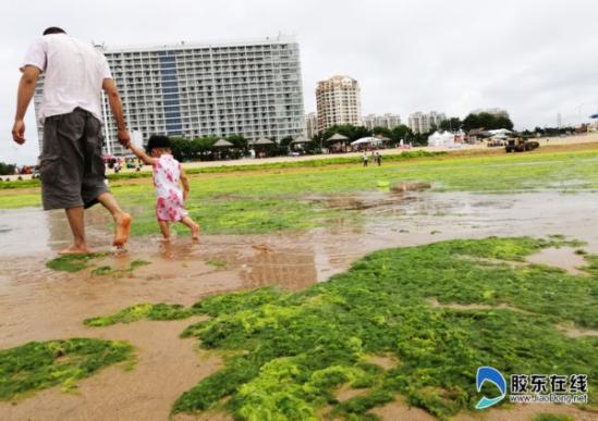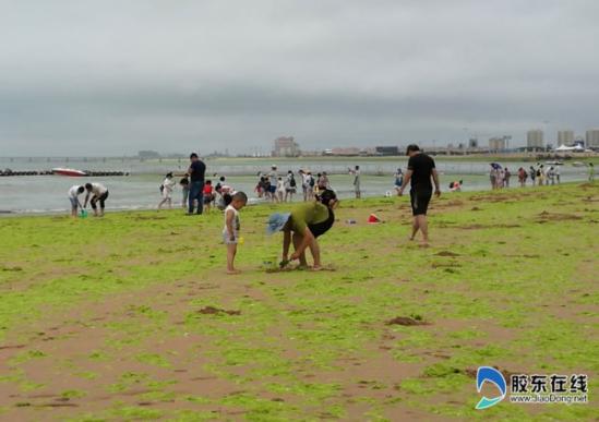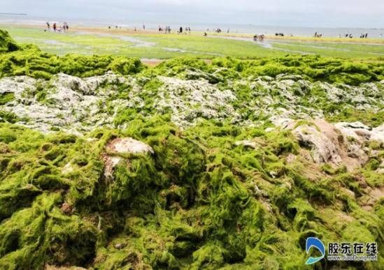 滸苔侵襲海陽(yáng)如“草原” 游客海灘“踏青”(圖)
