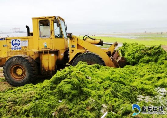 膠東在線7月8日訊(記者 焦冬)近日,大片滸苔侵入海陽(yáng)市鳳城海域,沿岸一帶被“綠潮”包圍,猶如一片“草原”,游客海灘上“踏青”不亦樂(lè)乎。據(jù)悉這是滸苔2008年第一次入侵海陽(yáng)沿岸后的第八次來(lái)襲。當(dāng)?shù)丨h(huán)衛(wèi)部門正加緊打撈處理,調(diào)動(dòng)挖掘機(jī)在現(xiàn)場(chǎng)開(kāi)展清理作業(yè),以確保海水浴場(chǎng)游泳環(huán)境。