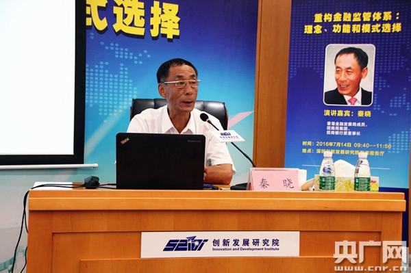 央廣網(wǎng)深圳7月14日消息(記者于鑫淼)今天上午,深圳創(chuàng)新發(fā)展研究院智庫報(bào)告廳邀請到了著名的企業(yè)家、經(jīng)濟(jì)學(xué)家,也是深圳創(chuàng)新發(fā)展研究院的學(xué)術(shù)委員會副主任秦曉博士,就金融管理體制做精彩的報(bào)告。香港金融發(fā)展局(FSDC)委員、清華大學(xué)和香港中文大學(xué)兼職教授秦曉博士發(fā)表題為“重構(gòu)金融監(jiān)管體系:理念、功能和模式選擇”的演講,并于現(xiàn)場聽眾互動。秦曉博士曾任招商局集團(tuán)有限公司董事長、招商銀行董事長;中國國際信托投資公司總經(jīng)理、副董事長、中信實(shí)業(yè)銀行董事長;秦曉博士曾是第九屆全國人大代表、第十屆、第十一屆全國政協(xié)委員、國家外匯管理局外匯政策顧問,2001年曾擔(dān)任亞太經(jīng)合組織工商咨詢理事會主席。本次“智庫報(bào)告廳”由深圳創(chuàng)新發(fā)展研究院理事長,深圳市委原常委張思平主持并致辭。