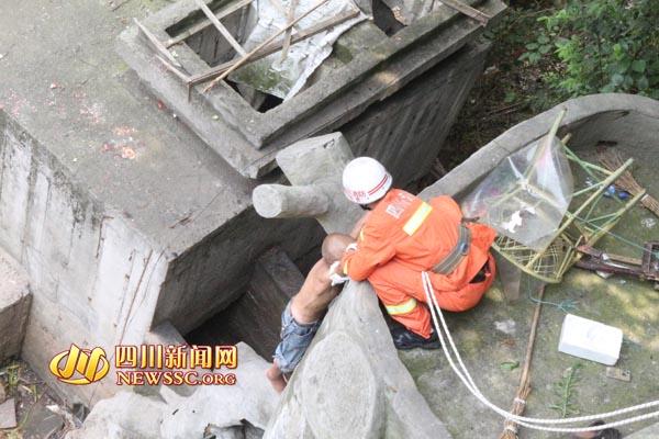 “男子大約60歲左右,被困在大橋外側(cè)下方的一處水泥樹墩邊緣,腳下是數(shù)米高的水泥地面,如果松手,可能摔傷!睋(jù)出警的消防官兵回憶,因此,男子牢牢抓住樹墩平臺的邊緣,始終堅持著,等待救援。