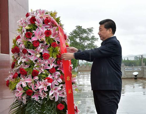 7月18日,習近平總書記冒雨趕往將臺堡,向紅軍長征會師紀念碑敬獻花籃。會寧和將臺堡,是紅軍三大主力會師的地方,標志著二萬五千里長征勝利結束。